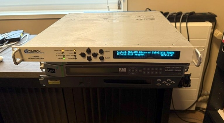 Used Comtech CDM-625L-IP Advance Satellite Modem, TPC, CNC, Pktp Present, FW: 2.0.3 – 5 kbps data rate, 5 Mbps, TPC/LDPC, 2.5 Mbps CNC, 1.1 base VersaFEC, Open Network framing, 8-PSK, 8QAM, D&I (1 Port), 48Vdc L-Band