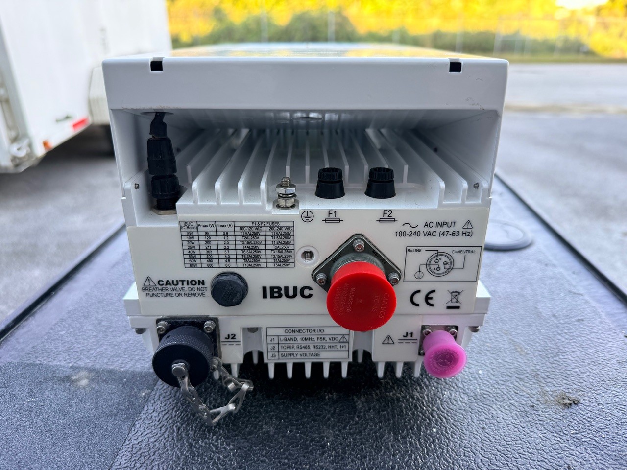 This is an unused Terrasat 40W Extended C-Band IBUC, model IBR058067-1ACO40-003, designed for high-performance satellite communication applications. Ideal for teleport, maritime, broadcast, and VSAT network operators requiring reliable extended C-band uplink power.